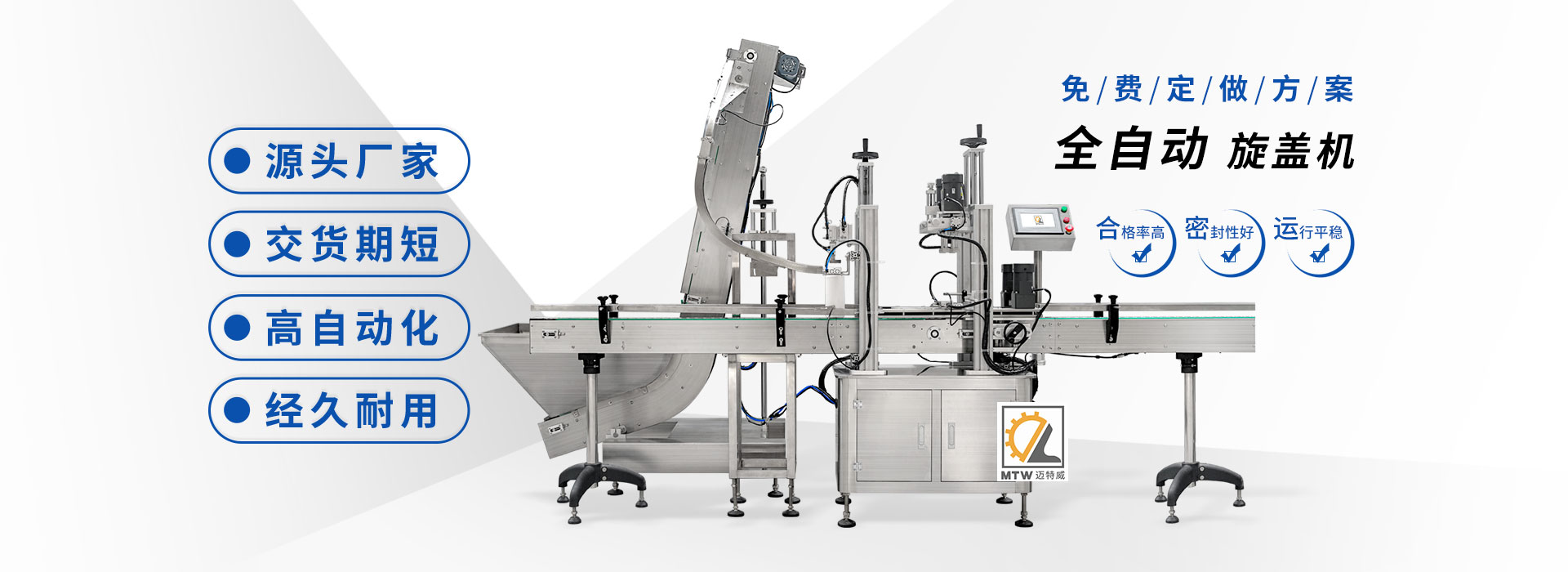 邁特威自動化設備(天津)有限公司坐落于素有京津明珠之稱的天津·武清區(qū),是國家高新技術企業(yè),專注生產(chǎn)、研發(fā)、銷售全自動灌裝機、旋蓋機、封口機、貼標機等系列產(chǎn)品,立足京津冀、服務全國,遠銷海內外,團隊由行業(yè)高技術人士組成,為國內外食品、日化、糧油、醫(yī)藥等企業(yè)提供滿意的包裝解決方案。 查看詳情